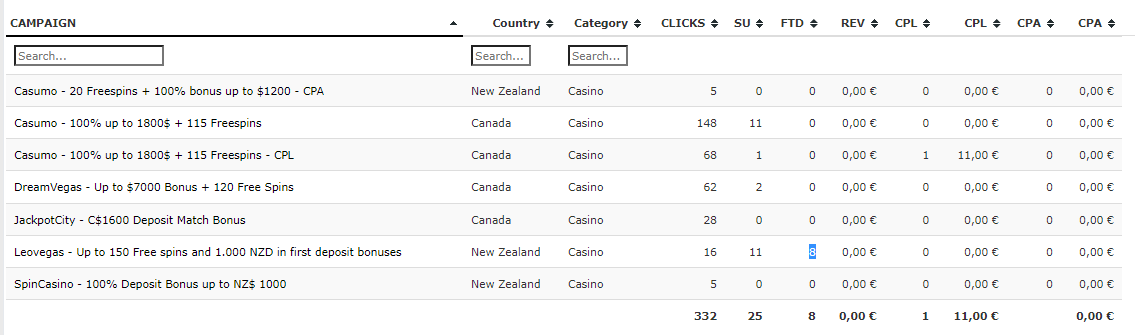 I also have some signups and FTDs there (which were like sent from another geo, and not the one my link was made for) so my earnings from that geo+casino = $0.00