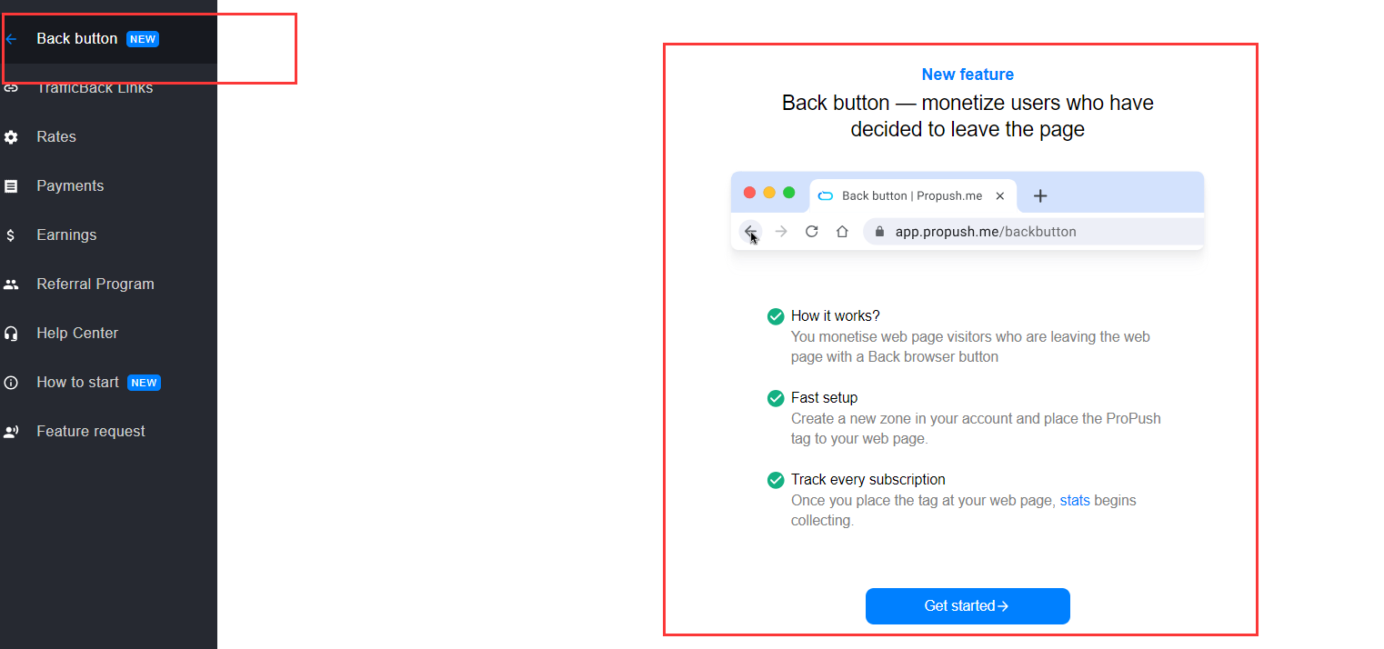 Recently, Propush has updated a new feature: Back button. This is great.