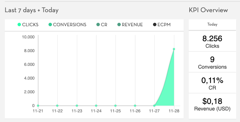 Spain (37 conversions, 6545 clicks. ROI -45.45%)