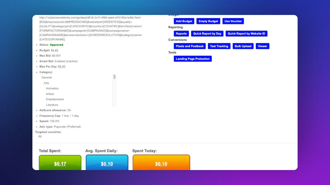 I already checked it against another campaign I ran last week (Beginners Guide 2.0), and the setup is practically the same in PopAds.