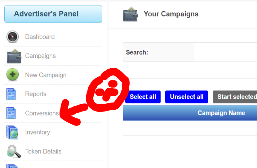 Hey @passive45 - the 'conversion tracking' page you want isn't under the 'conversions' link on the main dashboard (and you won't have any conversions to show on that page if you don't have any campaigns, which is why the error):