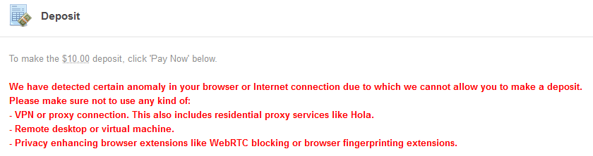 If you get this message when trying to make your deposit on PopAds:
