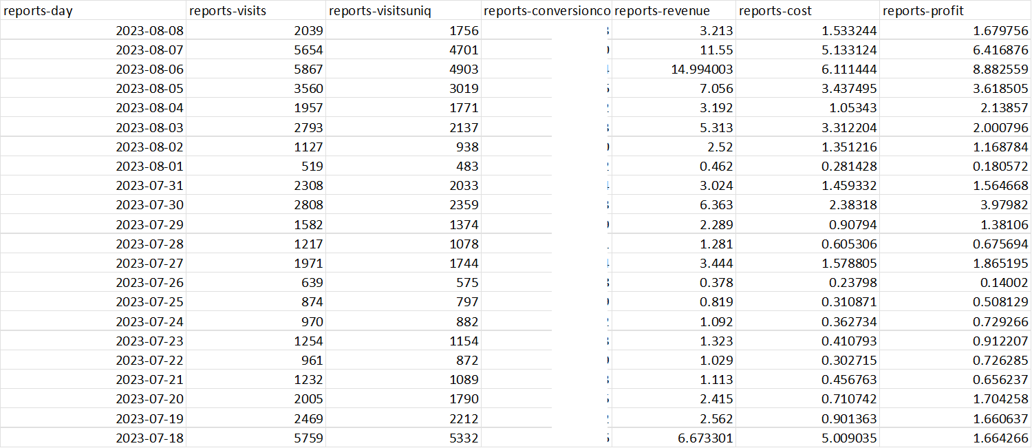 I've attached a screenshot of my daily reporting for an offer. You'll notice some days look bleak, but a simple 1-point increase in bidding often turns things around.