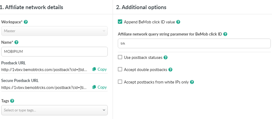 Step 7 - Add our BeMob Postback to MOBIPIUM