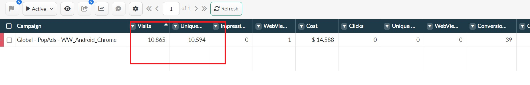 Also where does BeMob get the visits? I can't seem to locate the stats on either PopAds and Mobipium.