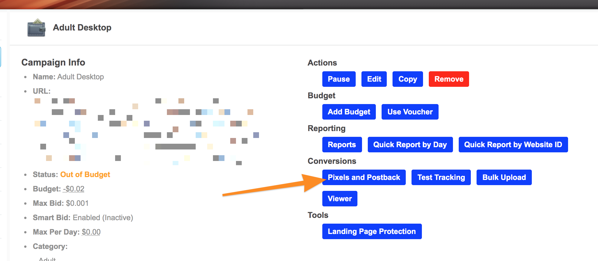 I have enclosed a photo of what shows up when I look at Conversions in PopAds. I do not see an area to find the Postback box. Am I looking in the wrong place, or do I need to wait until the campaign is approved?